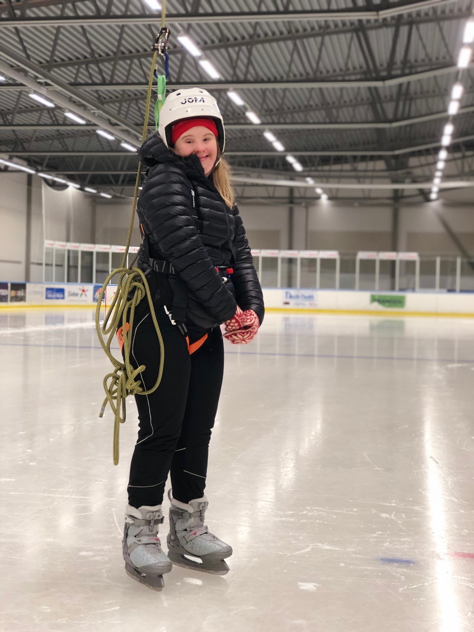 Glada miner på isen! Här är det Maja från kören syskonringen som provar att åka med No Fall. Stort tack till tränare Sanna och Ellen som hjälpte till på isen och till Maja som låter oss publicera bilden!