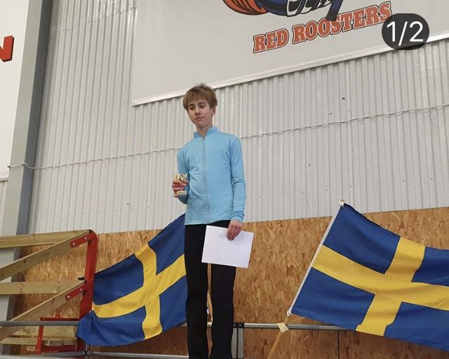 Isak Lindblom på pallen efter sitt tävlingsåk